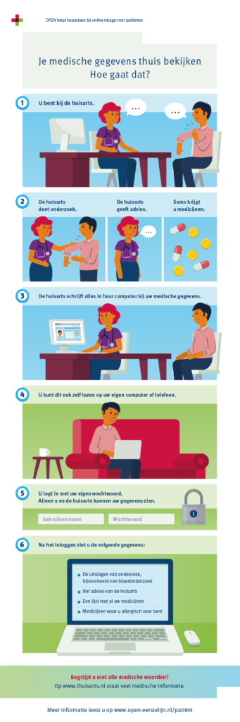 U kunt uw medische gegevens daarna online lezen op uw eigen telefoon of computer. Dat kan nadat u veilig inlogt. U heeft dan meer informatie om samen met ons te praten over uw gezondheid en om een keuze te maken over uw behandeling.